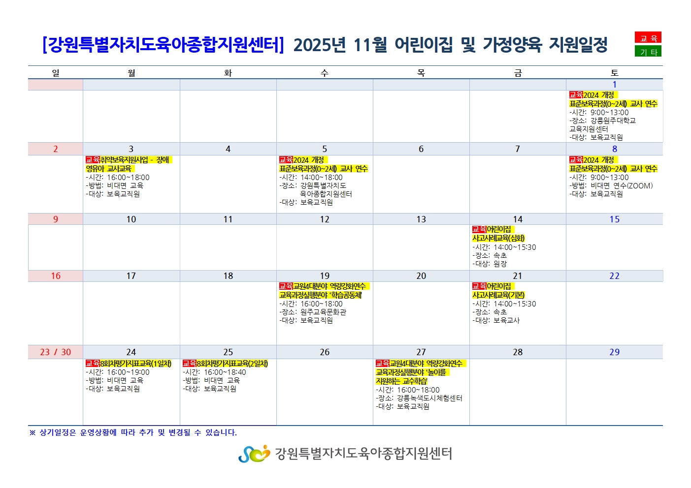 [강원육아종합지원센터]2025년 11월 어린이집 및 가정양육 지원 일정